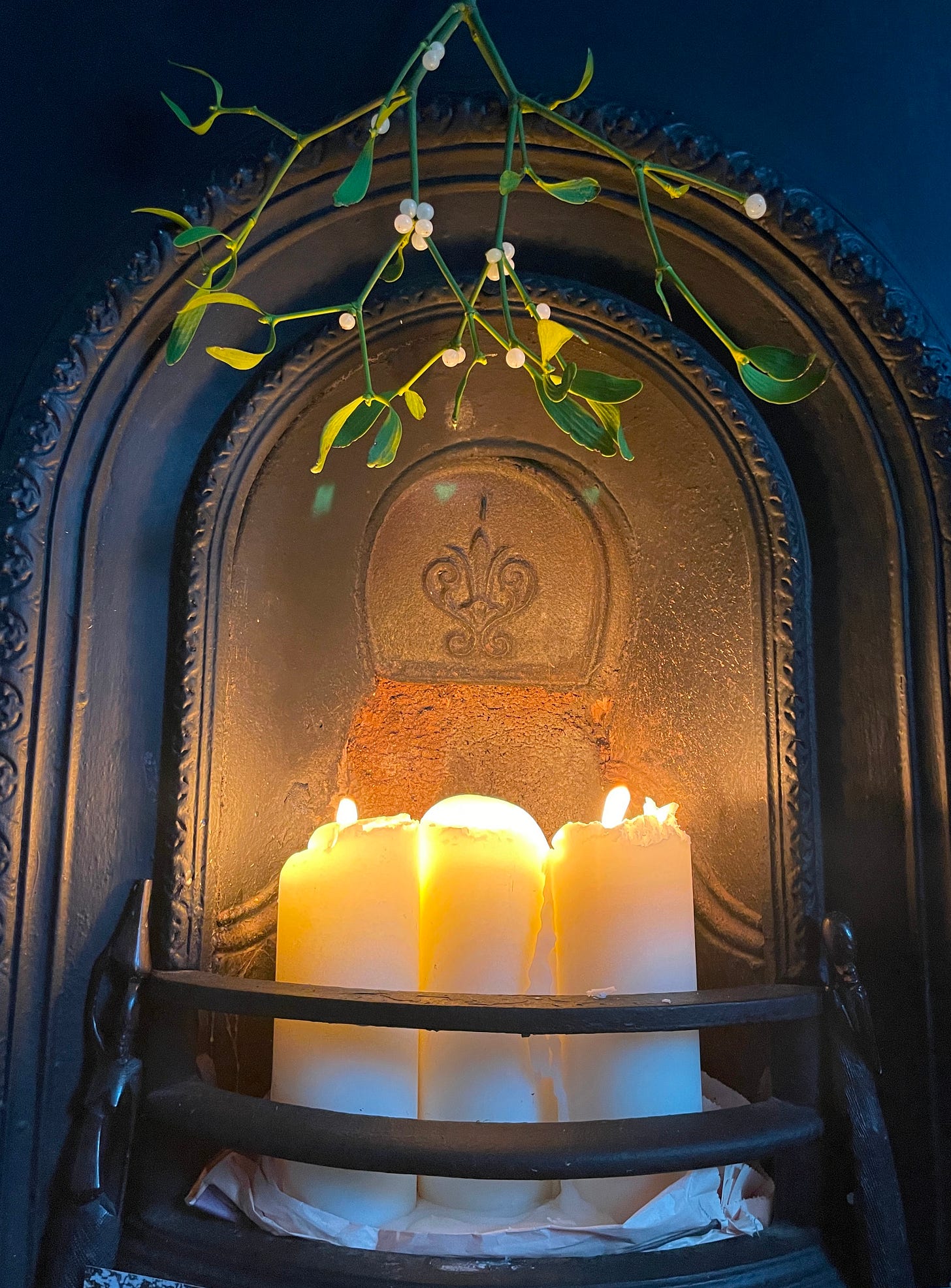 In lieu of my November newsletter, please accept this photo of mistletoe adorning my altar at home.